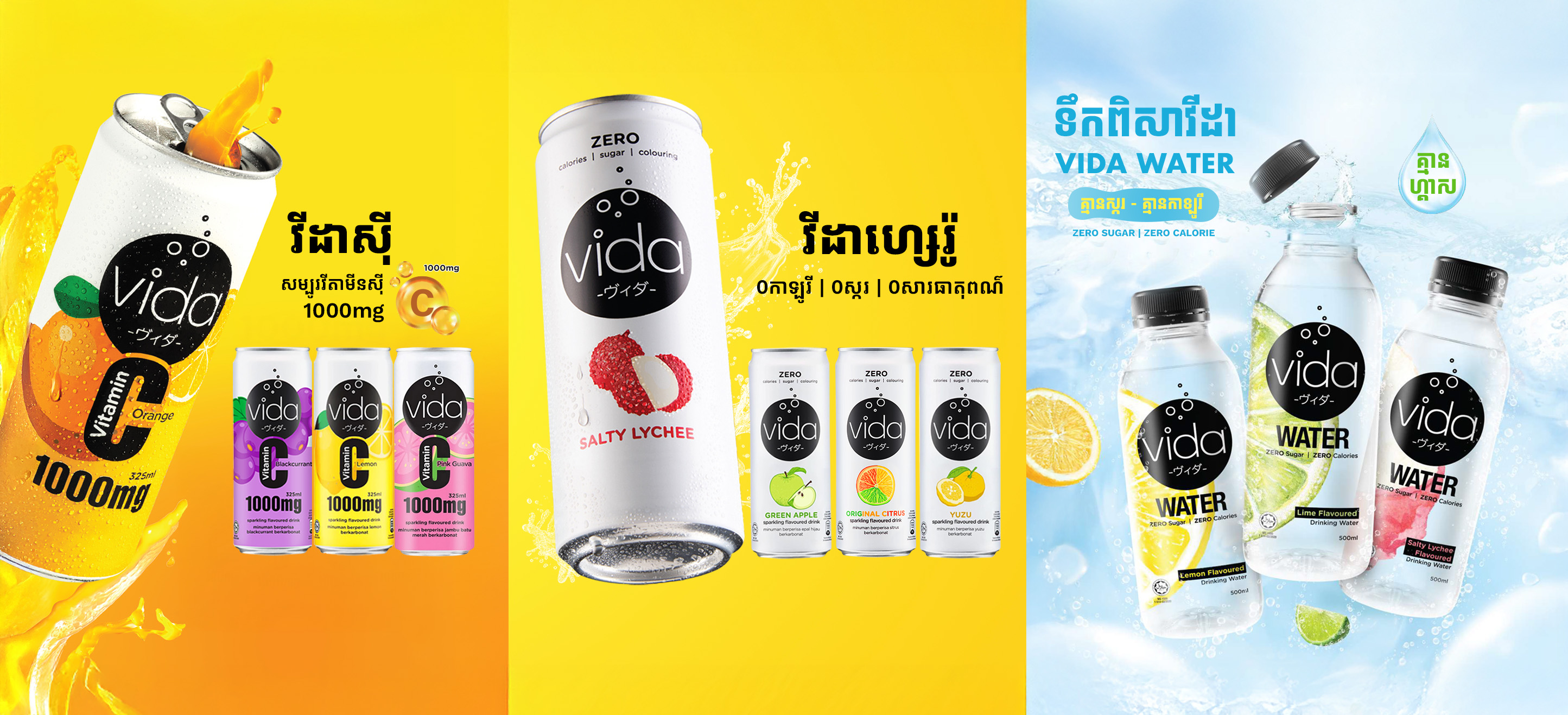 Vida Vitamin ‘C’ Orange flavoured Sparkling drink 325ml (Pack of 12) Carbonated Orange flavored drink Inspired and formulated by Japanese R&D Vida sparkling drink is the better choice every time. Strengthens immune system Reduces risk of heart diseases, Helps aid iron deficiency. Sparkle and shine with Vida Pick up. Drink. Be Healthy. With Vida C sparkling drinks! A sparklier life with the fun and healthy Vida vitamin C sparkling drinks. Vida sparkling drink is formulated using advanced Japanese R&D and expertise, Vida Vitamin C conatains essential 1000mg antioxidant, with low sugar content in every can. Vida Vitamin C Orange sparkling drink has the equivalent vitamin C of 19 Oranges packed in a can Vida sparkling drink is recognized as a healthier choice by Ministry of Health in Malaysia.
